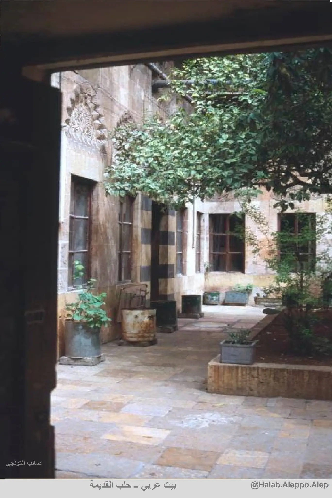 بيت حلبي قديم يتميّز بطابع معماري أصيل يعكس روح المدينة العريقة. يتمتّع المنزل بباحة داخلية واسعة محاطة بأقواس حجرية مزخرفة، تتوسّطها شجرة برتقال شامية تفوح رائحتها في المكان وتمنح الجو إحساسًا بالدفء والسكينة.