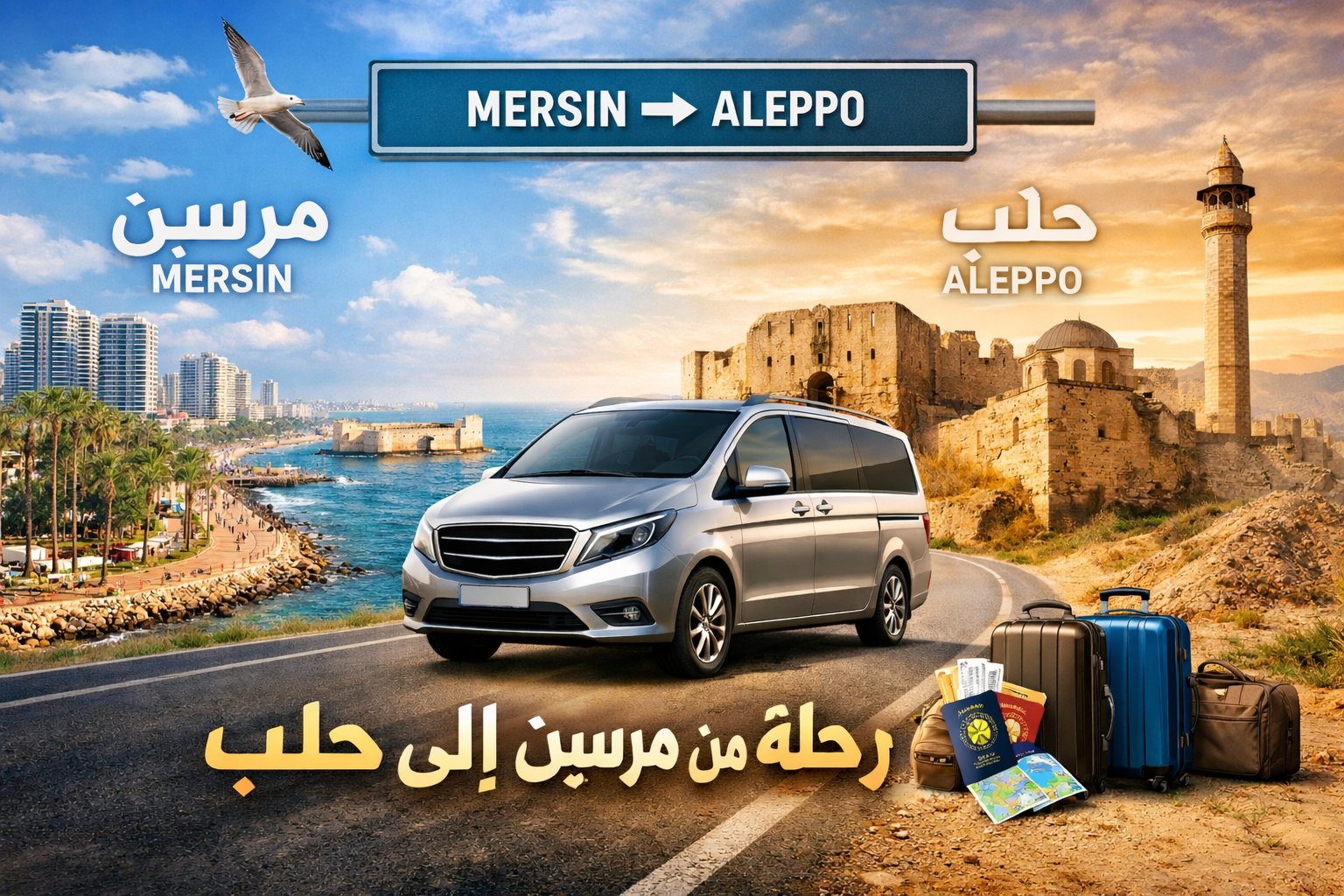 نعلن عن رحلة مريحة ومنظّمة من مرسين إلى حلب، مع توفير كافة شروط الراحة والأمان أثناء السفر.
